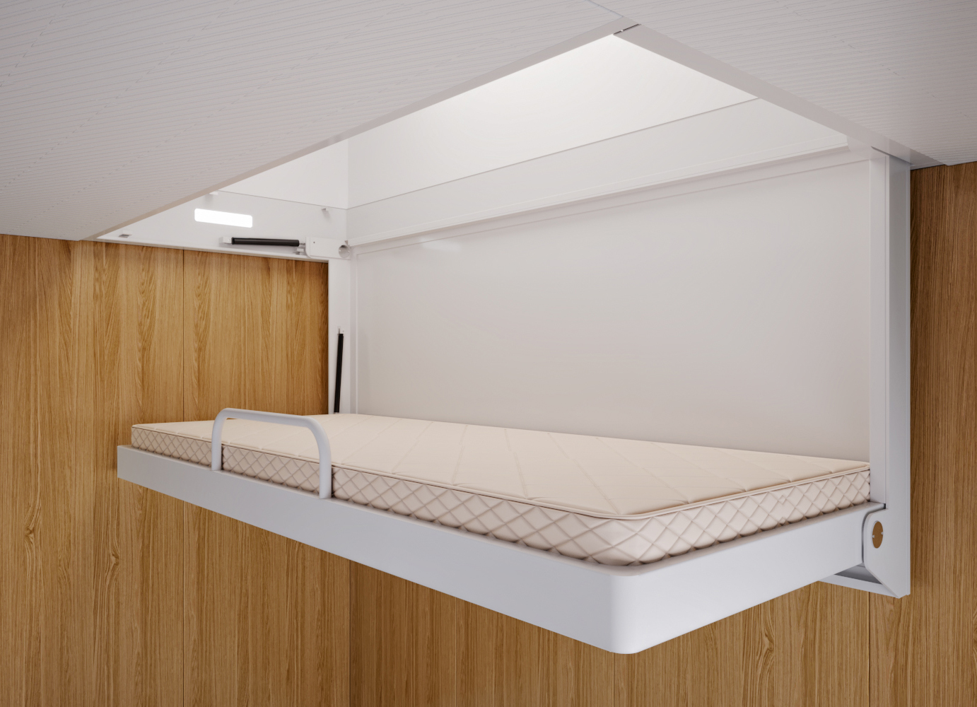 鋁合金翻板床、沙發(fā)床和吸頂式翻板床:是我們公司研發(fā)的專利產(chǎn)品,主要用于豪華郵輪、客滾船,翻板床安裝在起居艙室艙壁上,可以折疊,沙發(fā)床折疊后可以替代沙發(fā)使用,開啟可以當(dāng)床使用,吸頂式翻板床可以收進(jìn)天花板,開啟與閉合具有助力緩沖功能,充分利用和節(jié)省了船舶起居空間,安全、方便、美觀。每個(gè)系列產(chǎn)品都能滿足靜載荷、動(dòng)載荷及疲勞試驗(yàn)等內(nèi)控標(biāo)準(zhǔn),使用壽命可達(dá)20年以上,因產(chǎn)品品質(zhì)高端、價(jià)格合理,產(chǎn)品一經(jīng)推出,迅速占領(lǐng)國內(nèi)市場。