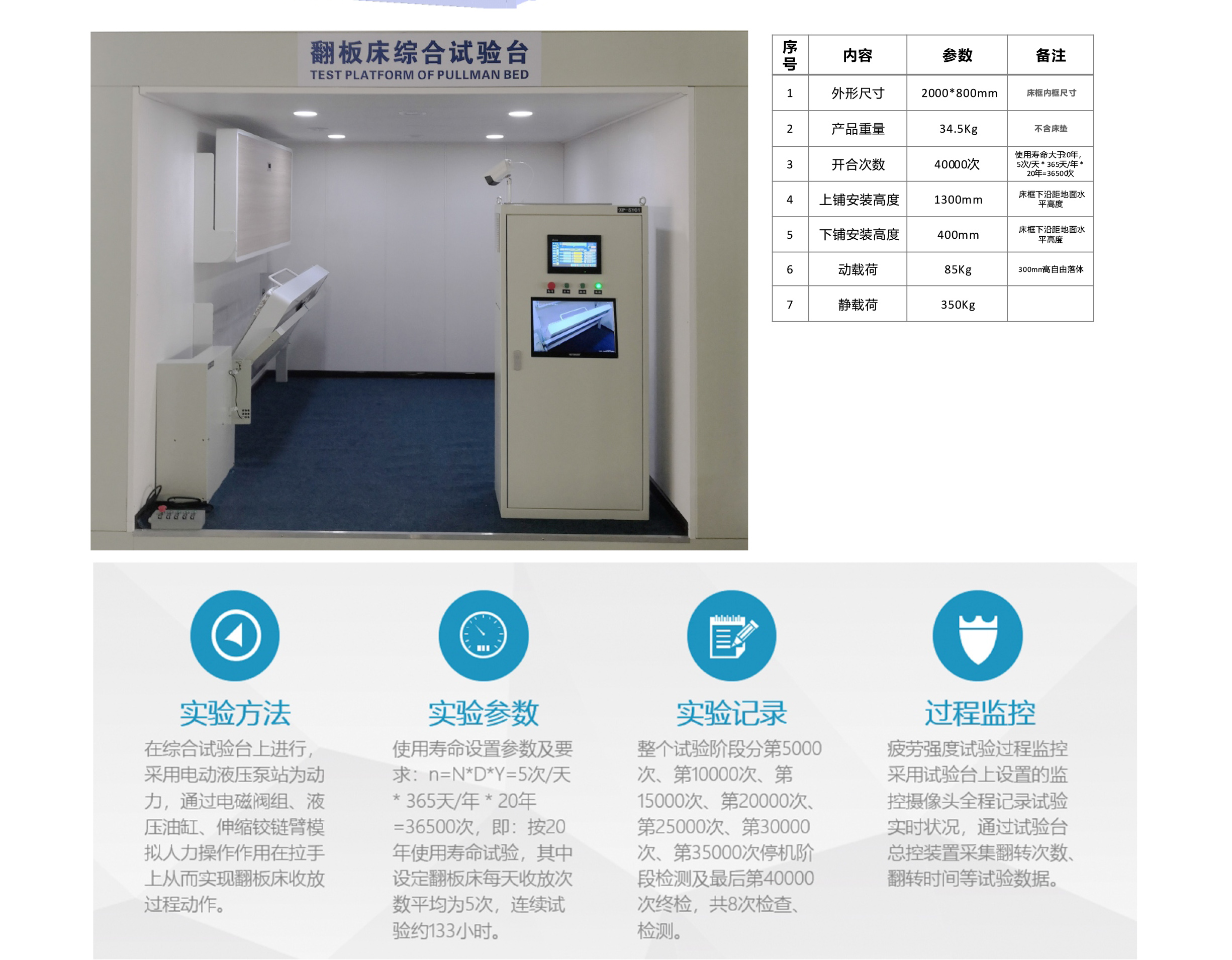公司自主研發(fā)設(shè)計(jì)和生產(chǎn)的翻板床綜合試驗(yàn)平臺、搖擺試驗(yàn)及動靜載荷試驗(yàn)平臺正式投入使用;試驗(yàn)平臺從結(jié)構(gòu)設(shè)計(jì)、控制系統(tǒng)設(shè)計(jì)均為我公司自主設(shè)計(jì)與制作。試驗(yàn)平臺投入使用后,將能實(shí)現(xiàn)翻板床的動載荷、靜載荷、疲勞試驗(yàn)、搖擺試驗(yàn)等,通過實(shí)時監(jiān)控系統(tǒng)將完全記錄實(shí)驗(yàn)數(shù)據(jù),有效分析產(chǎn)品性能;