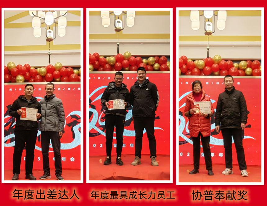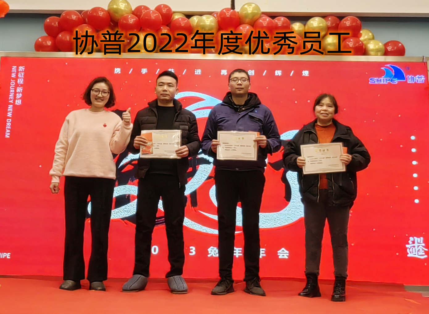 趙總致辭后,公司為2022年度表現(xiàn)優(yōu)異的團(tuán)隊(duì)和個(gè)人進(jìn)行了表彰。人才是公司生存和發(fā)展之本。公司發(fā)展的每一步都離不開(kāi)每個(gè)協(xié)普人的努力和付出。本年度公司共評(píng)選出三名優(yōu)秀員工——陶?;?、楊剛、徐金鳳,“2022年度突出貢獻(xiàn)獎(jiǎng)”——張傳東、桂佳俊,“2022年度敬業(yè)獎(jiǎng)”——陳阿龍,“年度宣傳小能手”——宋玉秋;“協(xié)普年度出差達(dá)人”——胡金龍,“年度最具成長(zhǎng)力員工”——王傳銀,“5S進(jìn)步團(tuán)體”——技術(shù)部、車間鉚焊班,“質(zhì)量進(jìn)步團(tuán)體”——質(zhì)量部,“協(xié)普奉獻(xiàn)獎(jiǎng)”——?jiǎng)⑼ビ瘛?/span>