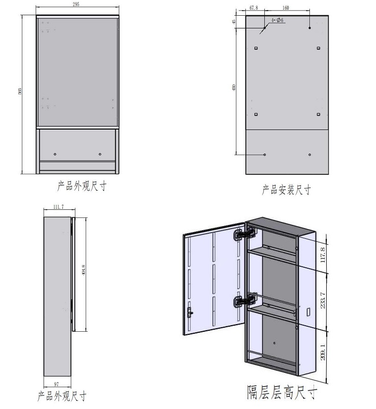 可選材質:鍍鋅鋼板、鋁合金、不銹鋼; 銀鏡、無銅鏡、不銹鋼鏡面。